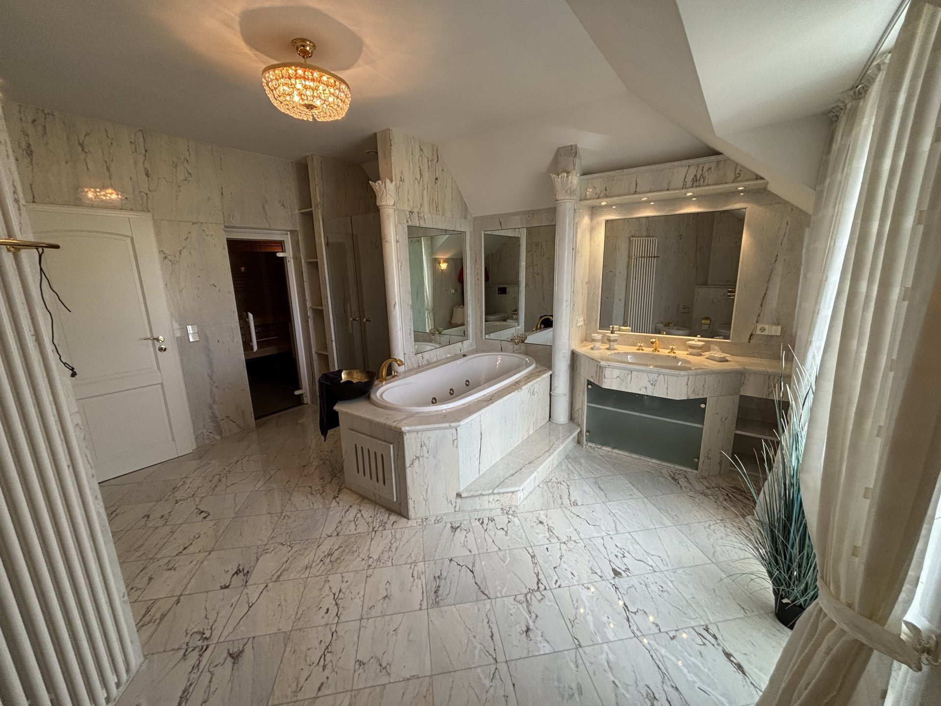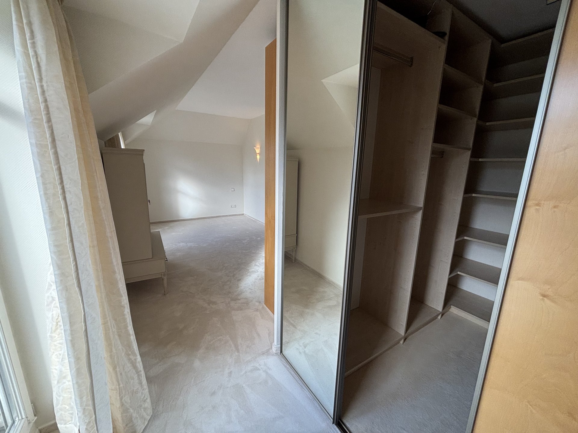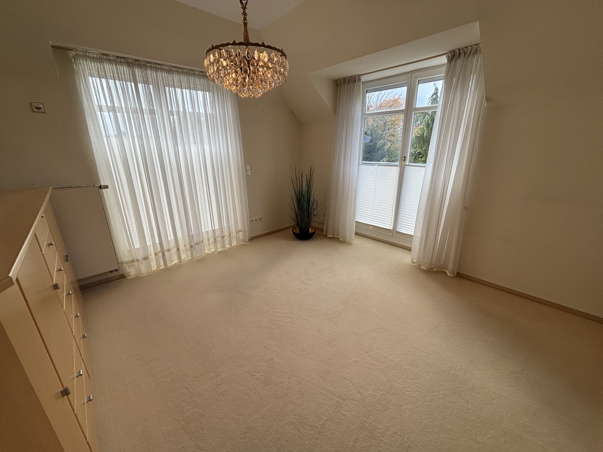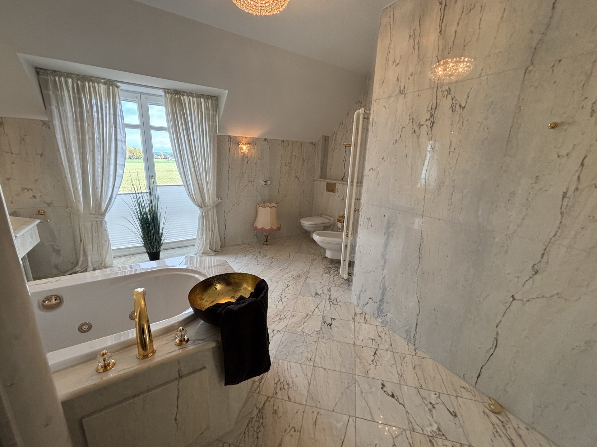 Im Obergeschoss befinden sich zwei Zimmer und ein Duschbad mit direktem Zugang zum teilumlaufenden Balkon. Highlight ist das Schlafzimmer mit Ankleide und Badezimmer en Suite. Vom Schlafzimmer gelangen Sie ebenfalls auf den schönen Balkon mit Weitblick.