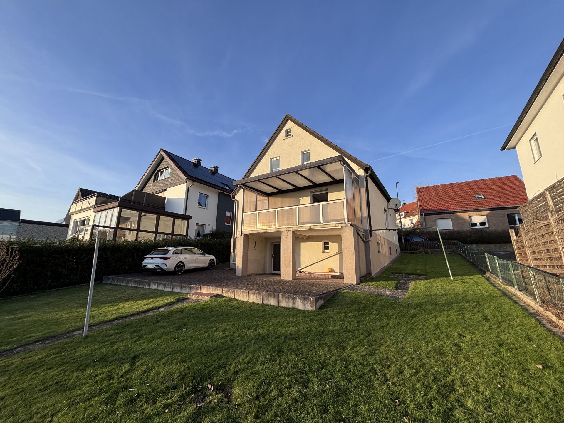 Das Wohnhaus befindet sich in leichter Hanglage und teilt sich wie folgt auf: Flur, Küche, Duschbad, Schlafzimmer, Wohn-Essbereich mit Zugang zum großzügigen, überdachten Balkon. Hier können Sie geschützt gemütliche Stunden mit einem wunderschönen, unverbauten Weitblick verbringen. Das Dachgeschoss verfügt über zwei Zimmer. Weitere Ausbaureserve steht hier zur Verfügung. Vom Keller haben Sie Zugang in den großen, komplett eingezäunten Garten, hier können Ihre Kinder noch unbeschwert spielen und auch Hobby-Gärten können sich hier auslassen. Am Kellerausgang befindet sich ebenfalls ein überdachter Freisitz. Für Ihre PKW stehen Ihnen auf der Hoffläche Stellplätze zur Verfügung.