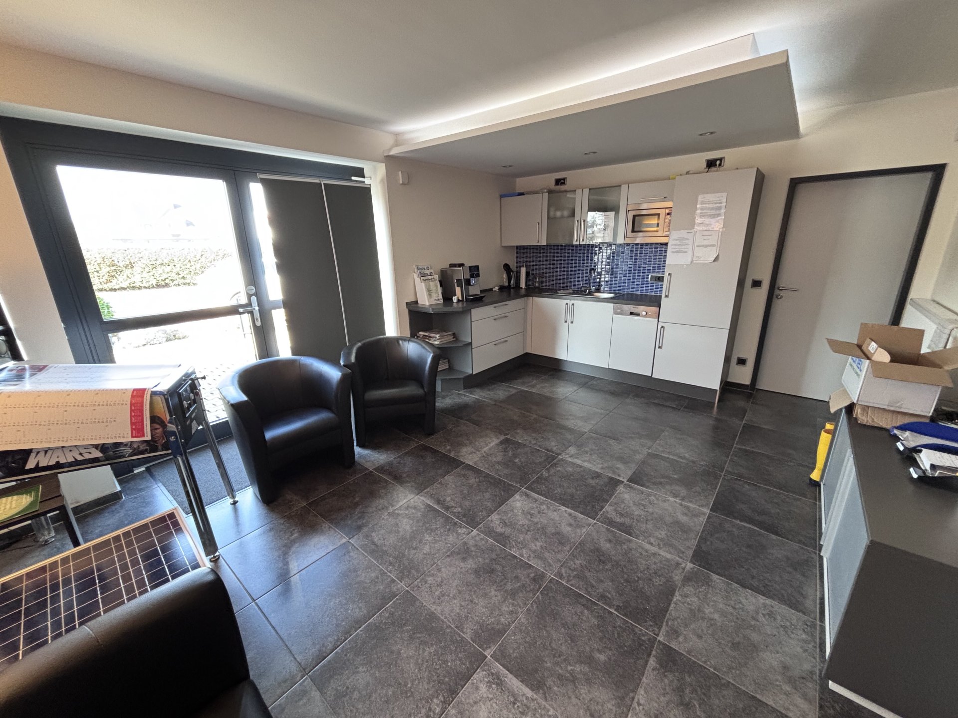 Dieses moderne Gewerbeobjekt kombiniert funktionale Lagerflächen mit komfortablen Büroräumen. Die Immobilie bietet eine geräumige Halle, einen Empfangsbereich, zwei Büroräume, eine Küche, einen Flur, einen Gemeinschaftsraum und sanitäre Anlagen.